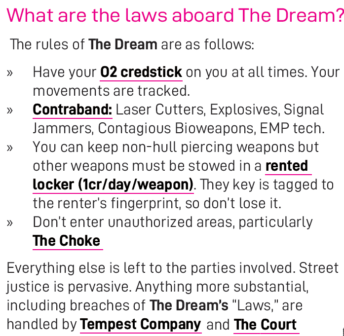 Oxygen Tax10cr/day/person. 50cr/day/person during major events (like at The Court (pg. 26)).